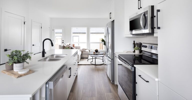 LEVA Townhomes feature interiors that showcase StreetSide’s quality construction, with quartz counter tops, luxury vinyl plank flooring and three-coat paint finish included as standard.