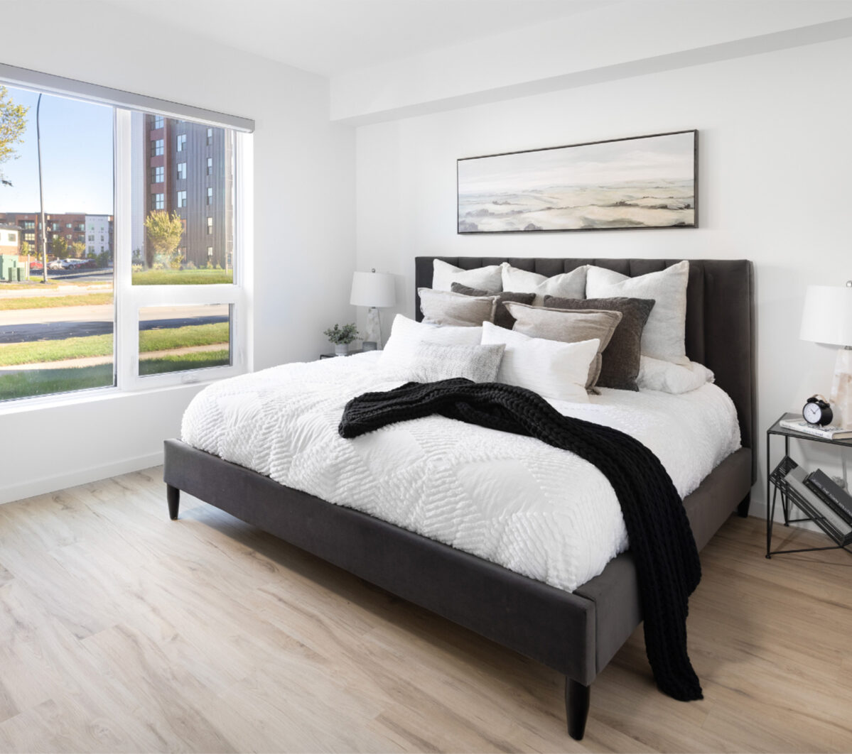 - Modern matte black fixtures throughout